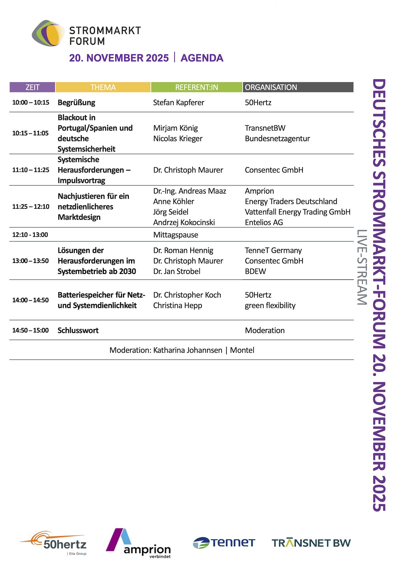 On November 20, 2025, the German Electricity Market Forum took place for the sixth time. The title of this year's event was: The Electricity Market in Transition: Flexibility and Security Shape the Future.